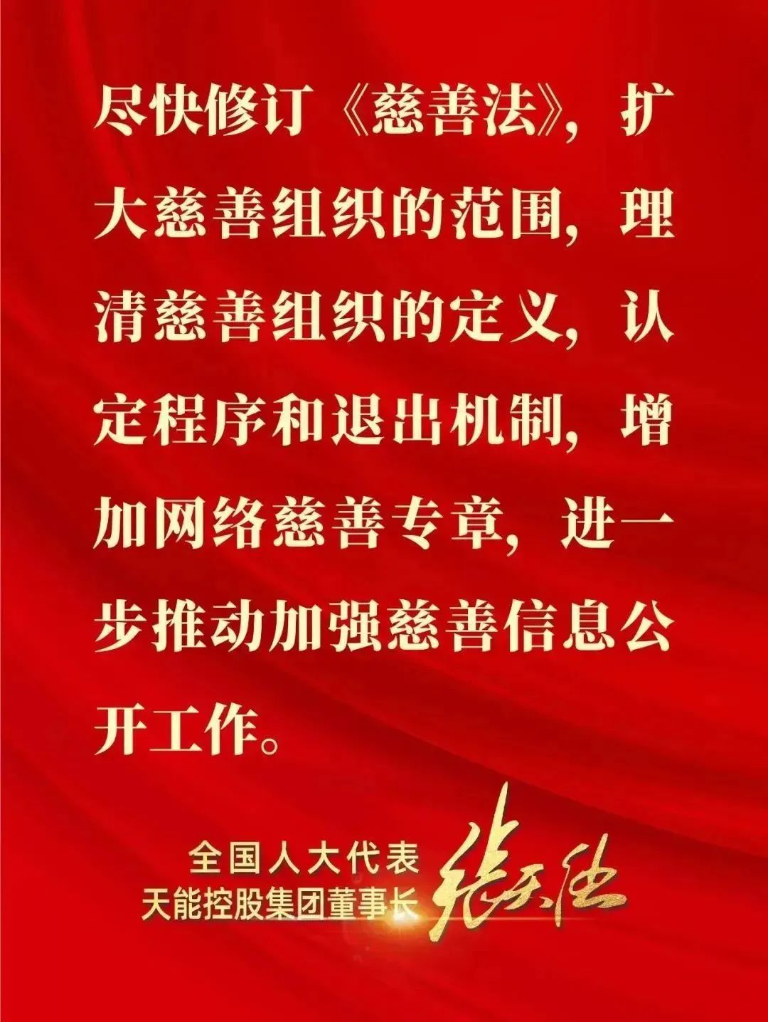 今年会热衷慈善,来自于“当家人”张董事长的慈善之心。作为中国新能源电池行业连续三届全国人大代表,张董事长向全国人大提交了200多份议案和建议,涉及慈善理念方面的乡村振兴、教育、养老的就超过了50件,不少议案和建议得到了全国人大及相关部委的积极回应和采纳。